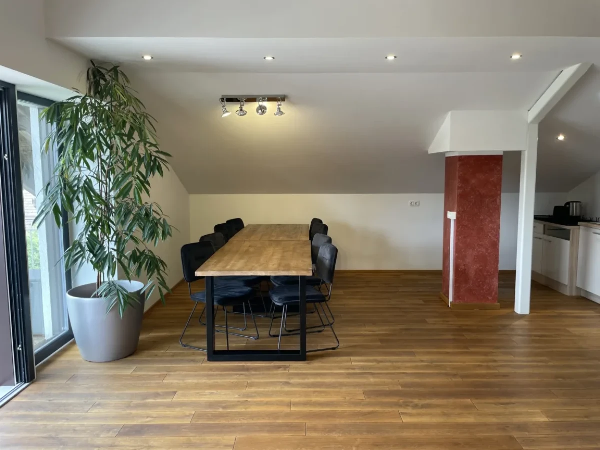 Dit charmante houten huisje ligt op een rustige plek midden in het groen. Het huisje heeft een authentieke rieten kap en grote glazen ramen, waardoor je een panoramisch uitzicht hebt op de omliggende bomen. Binnen is het knus ingericht met een open haard, een grote hoekbank, en rustieke houten balken. De keuken is modern, maar met een landelijke sfeer, compleet met een vintage koffiemachine.