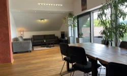Buiten vind je een ruime veranda met een schommelstoel en een hangmat om te genieten van de frisse lucht. In de grote achtertuin is een privé jacuzzi en een vuurplaats voor een gezellige avond onder de sterren. Voor avontuurlijke gasten zijn er wandel- en fietsroutes die direct vanuit de achtertuin beginnen.